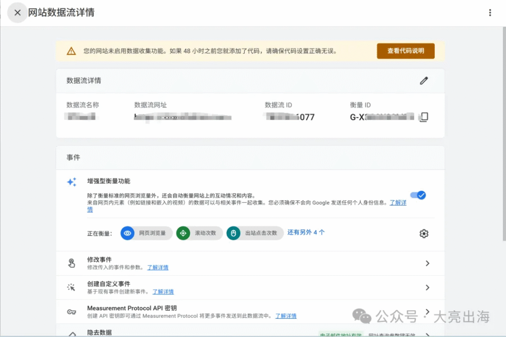 • 获取 测量 ID(形如 G-XXXXXXX)。